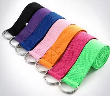 - One Yoga Belt (Strap). A 180cm x 3.8cm belt with a sturdy D-shape buckle.
