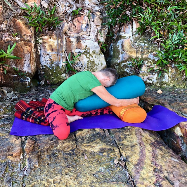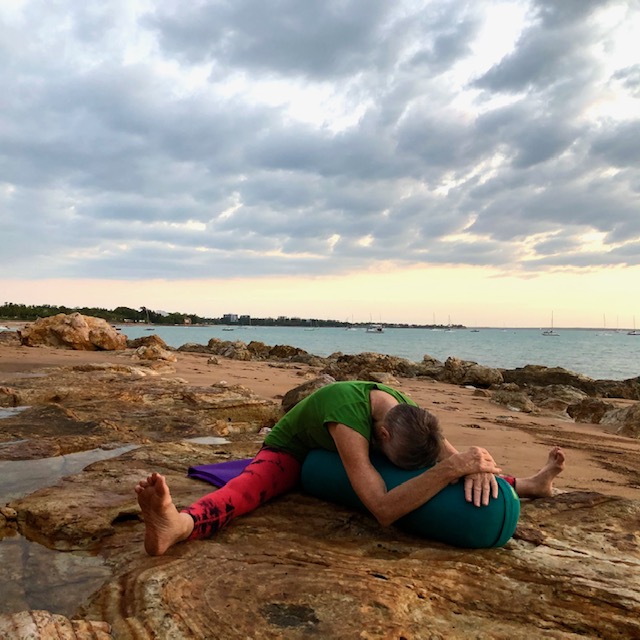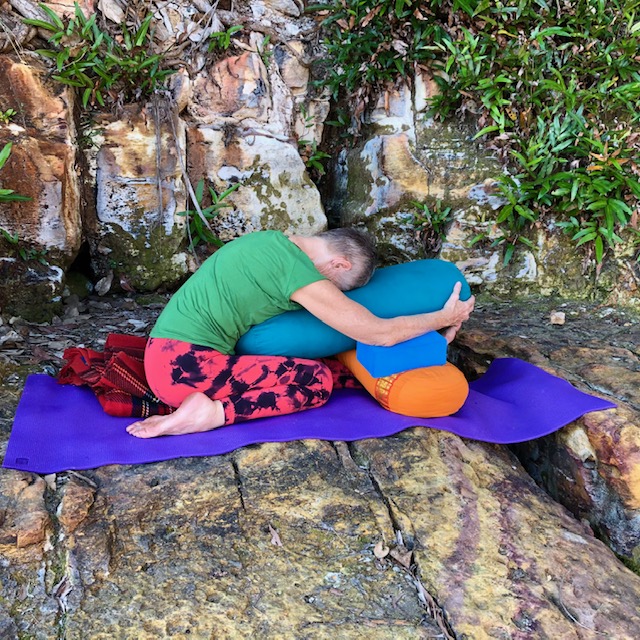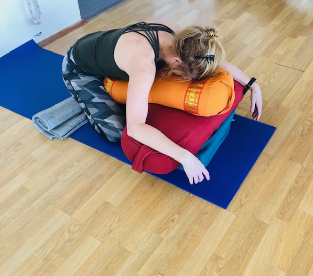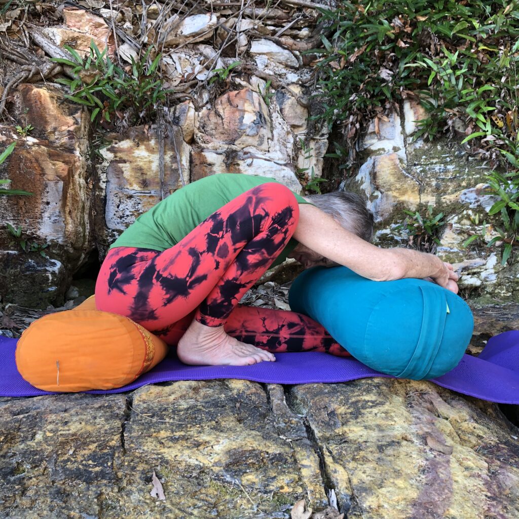 It is a time of the month where woman should conserve their energy. She should try to not take on too much extra work and in fact rest more and try and recuperate. These supine poses and forward bends are wonderful for settling the mind and soothing the nervous system. Together with supported backbends they open the chest area and stretch out the gut area and relieve backache, tension in the pelvic area of the body. They also help  chase the” blues away”.