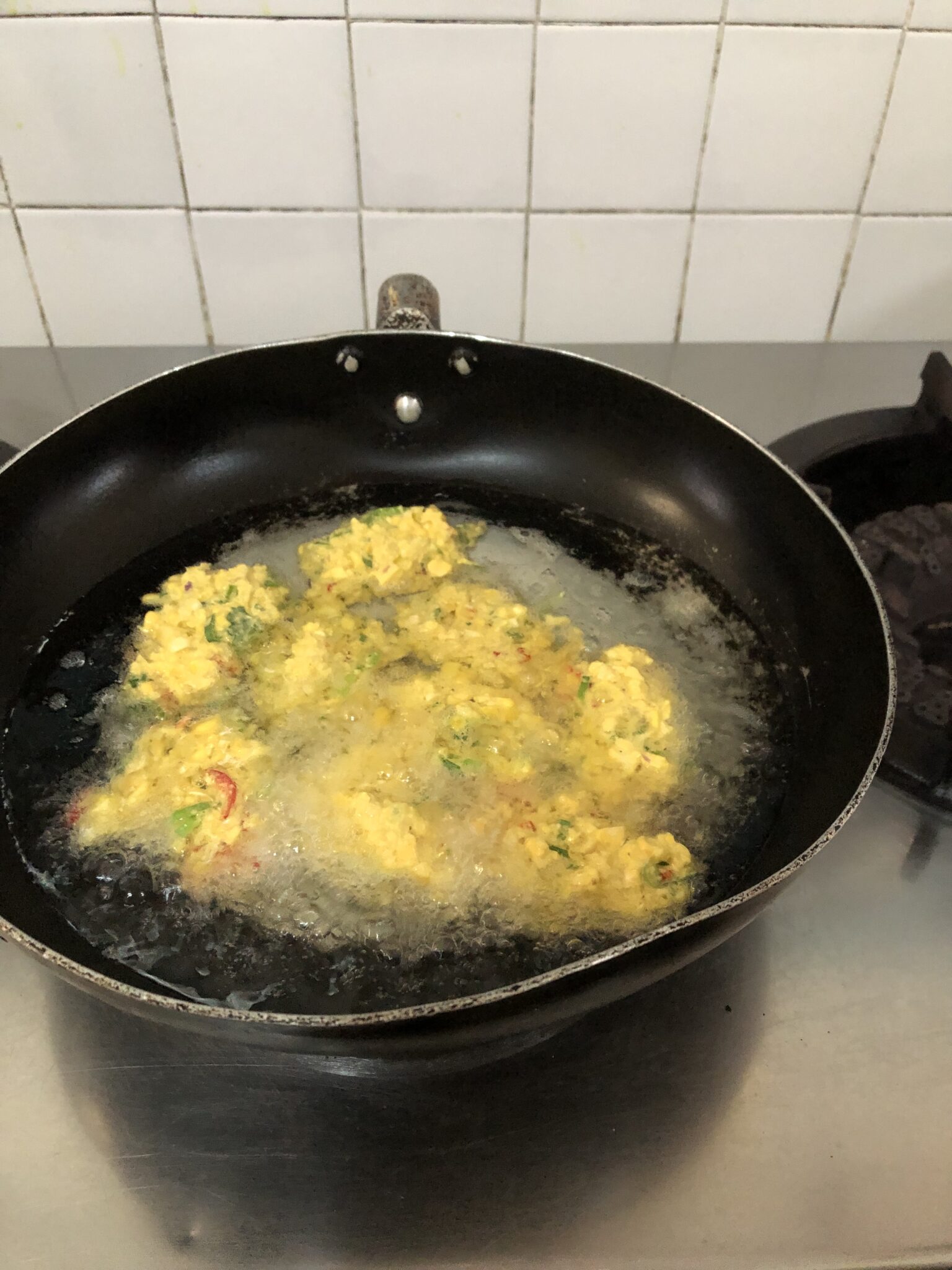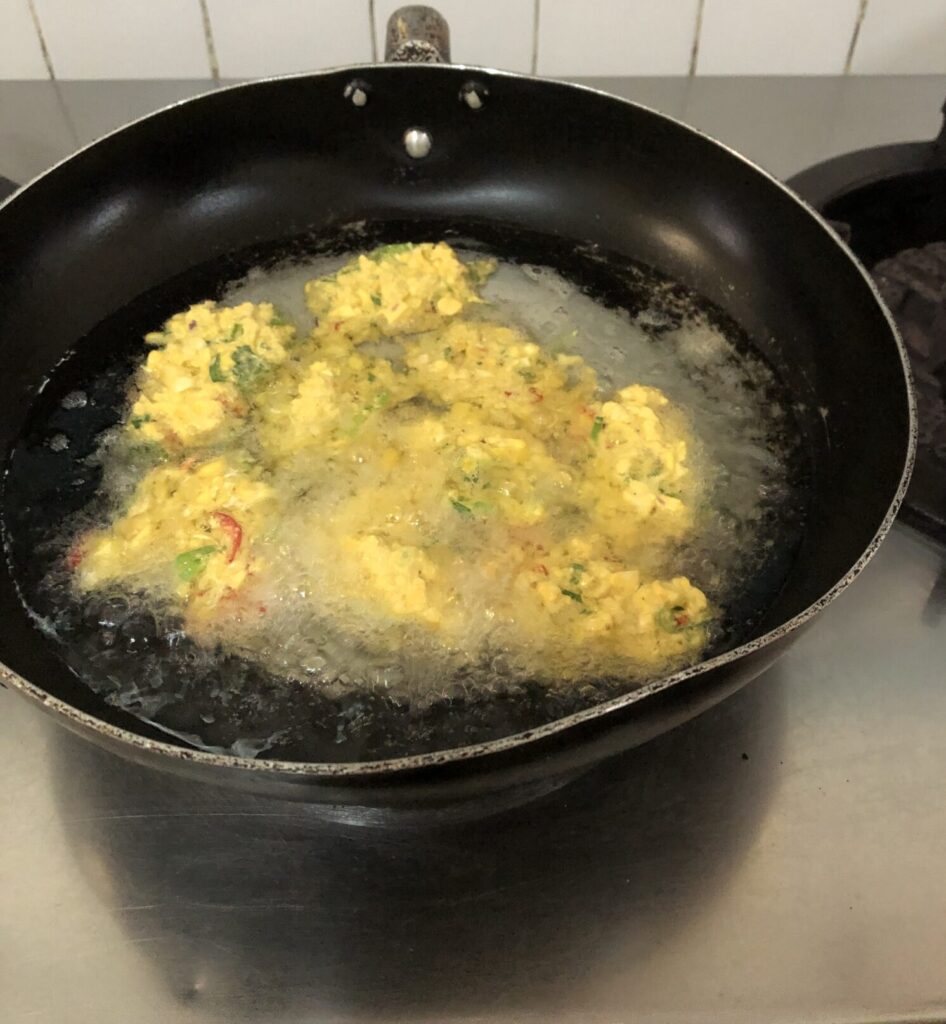 Place into a mixing bowl and add finely chopped chilli, spring onions, celery leaf